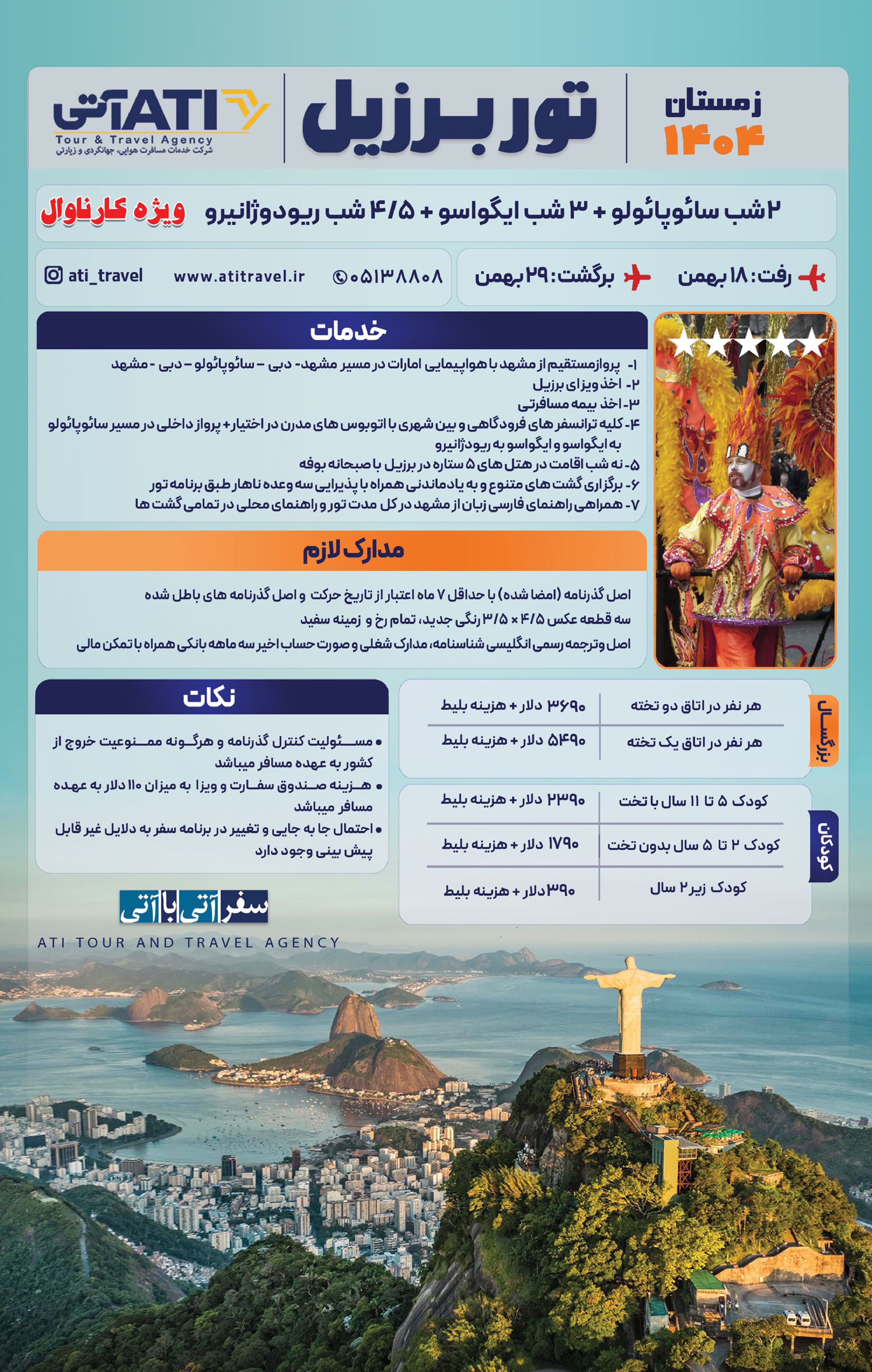 تور گروهی برزیل ویژه زمستان ۱۴۰۴